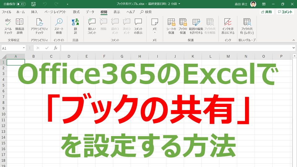 ひとつは、「ブックの共有」と呼ばれる旧来からの方法です。この方法を使えば、OneDriveに限らず、ファイルの共有ができていれば、エクセルを同時に編集できます。ただし、使っているうちにデータが肥大化するなどの問題点があり、また、古い機能であるためテーブルなどの新しい機能が使えないという制約があります。